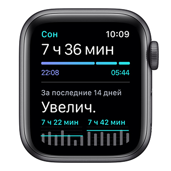 Производительность Apple Watch Series 6 повысилась благодаря обновлению аппаратного обеспечения — теперь в их поразительно компактном корпусе заключено ещё больше функций и возможностей. Совместно с новым двухъядерным процессором на базе A13 Bionic в iPhone 11 обновленный процессор S6 SiP работает до 20% быстрее. Это значит, что приложения также открываются на 20% быстрее, а устройство по‑прежнему способно работать до 18 часов без подзарядки.2 Кроме того, Apple Watch Series 6 оснащены чипом U1 и антеннами для сверхширокополосной связи,3 что позволяет обнаруживать беспроводные сети с небольшим радиусом действия и поддерживать новые функции, например использовать цифровые ключи нового поколения для автомобилей. Теперь Apple Watch Series 6 быстрее заряжаются — для полной зарядки требуется менее 1,5 часов. А мощности усовершенствованного аккумулятора достаточно, чтобы отслеживать определённые виды тренировок как в помещении, так и на открытом воздухе.Улучшенный всегда включённый дисплей Retina в Apple Watch Series 6 светится до 2,5 раз ярче, чем дисплей Apple Watch Series 5, поэтому информацию на циферблате хорошо видно даже при ярком солнце на улице, когда рука пользователя с часами опущена и они находятся в неактивном режиме. В этом режиме пользователи могут легко открывать Центр уведомлений и Пункт управления, одним касанием получать доступ к расширениям и даже менять циферблаты жестом смахивания, не активируя экран.